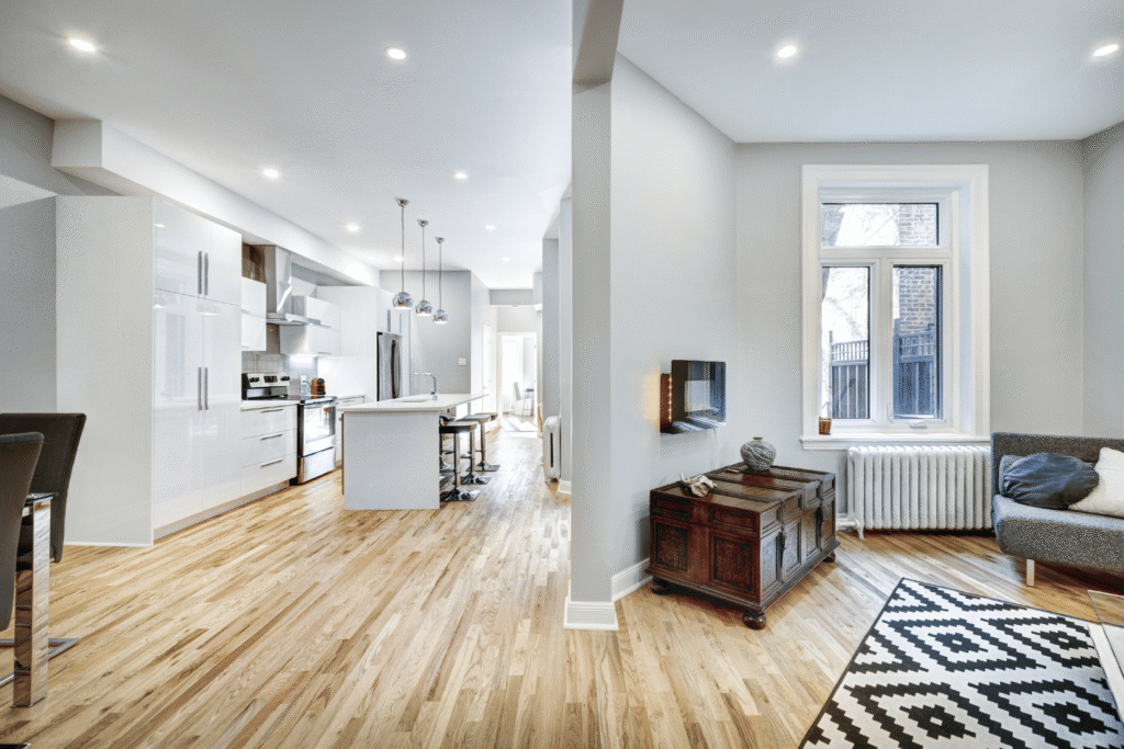 Bij een totaalrenovatie brengen we je woning volledig op een nieuw niveau. Dat kan gaan om het strippen en opnieuw opbouwen van alle ruimtes, het verplaatsen van wanden, vernieuwen van installaties en het afwerken van vloeren, wanden en plafonds.